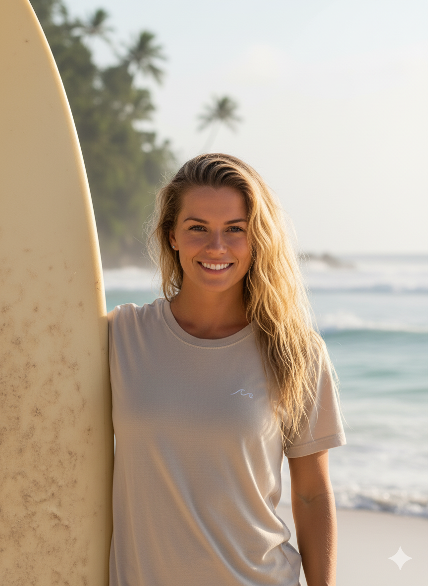 Nossas camisetas premium são feitas em 100% algodão fio 30.1 penteado — toque macio, caimento alinhado e resistência que aguenta rotina, rolê, trabalho e pós-praia sem perder presença. É aquele tipo de peça que você coloca e sente a diferença no primeiro segundo.